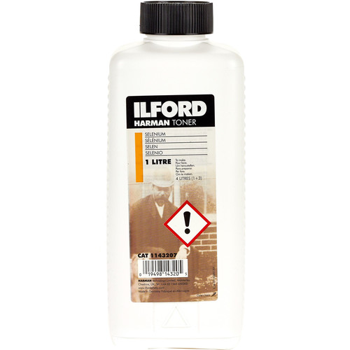 This is a 1 liter bottle of Harman Selenium Toner from Ilford. It is another innovation by Ilford Photographic, a leader in the film/chemical industry. This toner provides rich and deep blacks with a tendency to push color towards the purplish end of the spectrum. Olive hues will be absorbed yielding brown tones on fiber-based silver paper.